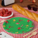 Feierliche Teller mit einem spielerischen Weihnachtsmuster mit Rentieren, Heilige Beeren, Bonbons, Sternen und Weihnachtsmannmützen auf hellgrünem Hintergrund. Ideal für Feierlichkeiten, Ansammlungen oder Weihnachtsfeiern. Fügen Sie Ihrer festlichen Tischumgebung eine Touch Spaß und Fröhlichkeit hinzu!