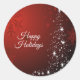 Weihnachts Party Weißstars Tree Red Snowflakes Klassische Rundaufkleber. Einzigartiges, schönes, stilvolles Design. Leicht personalisiert zu sein. Schriftart Stil, Größe und Farben können geändert werden. Matching-Elemente sind verfügbar.