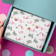 Weihnachts Pink Flamingo Feiertag Party Tissue Paper zeigt ein Muster von Flamingos mit Party Ballons und Weihnachtshütten in blühenden Kakteen Pflanze. Von Evco Holidays entworfen www.zazzle.com/store/evcoholidays