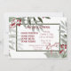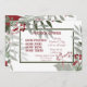 Eine schöne rote Poinsettia Rahmen um den Text, der Sie zu einem Potluck Weihnachtsmann einlädt. Der Vordertext ist in einem grünen Rechteck mit rotem Text gerahmt. Die Rückseite hat einen grünen Rahmen mit rotem Text für das klare Lesen.