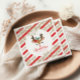 Weihnachts-Rentiermädchen Geburtstagsnapkins mit niedlichem Rentiergesicht und Goldenen Schneeflocken und Rot und Gold Glitzer Streifen.
