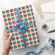 Dieses weihnachtliche Verpackungspapier zeichnet sich durch ein nahtloses quadratisches Muster aus, das mit rotem und grünem Glitzer gefüllt ist.