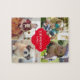 Passen Sie dieses Puzzle mit Fotos an, schließen Sie Ihr Lieblings-Foto der Kinder, Großeltern, Eltern, Haustiere etc. ein. Bis zu 4 Bilder zu ersetzen. Ändern Sie alle Fotos und Familiennamen. Macht ein tolles Weihnachtsgeschenk für die Familie. Ein rotes Label Rahmen Design Detail in der Mitte. *Bitte zögern Sie nicht, mich zu kontaktieren, wenn Sie Hilfe bei meinen Designs benötigen. E-Mail: info@lddesignloft.com