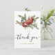 Ein personalisiertes Dankeschön an Familie und Freunde mit dieser eleganten Urlaubskarte. Dieses Design-Template verfügt über einen roten Kardinal auf einem Ast mit roten Beeren und glänzenden Weihnachtsbällen. Unten steht "Danke" in einem modernen schwarzen Skript. Passen Sie Ihren Namen in Grün an. Die Rückseite der Karte hat eine personalisierte Danksagung und Unterschrift. Entworfen von Susan Coffey.