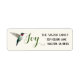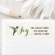 Weihnachts-Kolibris kehren Adressetikett mit einem rubingebeutelten Hummingbird auf einem cremefarbenen Hintergrund und dem Wort JOY zurück. Personalisieren Sie es, indem Sie Ihren Namen und Ihre Adresse hinzufügen. Der Stil, die Größe und die Farbe des Schriftartes können durch Klicken auf "Weiter anpassen" geändert werden.