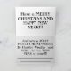 Eine Nahaufnahme eines Weihnachtsgeschosses, das während des Weihnachtsfeiertages unter einem Weihnachtsbaum auf dem Weihnachtsgeschenk sitzt. Das ist auf einer Grußkarte.