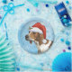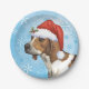Feiern Sie die Urlaubssaison mit einem Treeing Walker Coonhound mit einer Weihnachtsmannmütze inmitten einer Schneeflocke. Gute Ferien!