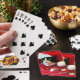 Diese bezaubernden Weihnachtskarten haben eine hübsche Tulxedokatze. Die Katze trägt eine Weihnachtsmannmütze und einen roten Bogen um ihren Hals. Die Kätzin hat einen bezaubernden Gesichtsausdruck, um den niedlichsten Weihnachtsspielkarten für den Liebhaber der Tuxedo-Katze oder jeden Katzenliebhaber zu machen! Copyright peachesthetuxedocat