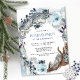 Exquisite Ferien oder Weihnachten Party Einladung mit herrlichem Aquarellturm mit Blume, Laub, Bogen und rustikalen Antlers in staubigen Blauen, Marine, Silber, Salbei und Weiß. Zurück in einzigartiges blaues Aquarellwasser mit cremefarbenem "präsentem" Bogen oben. Sammlung mit den zur Verfügung stehenden Produkten.