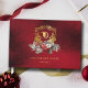 Zeitlos und elegant aber festlich ist das Gästebuch-Design mit klassisch handgezeichnet Wappen aus Goldfolie und Blumenmotiv, das durch ein buntes Spray aus rot-weißen Weihnachtsgebäck und Evergreens unterstrichen wird. Diese benutzerdefinierte Vorlage enthält bearbeitbare Textfelder sowie einen opulenten, rubinroten Samttexturhintergrund.