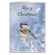 Wir wünschen Ihnen viel Freude und Frieden in dieser Weihnachtssaison mit einem niedlichen Chickadee-Vogel im Winter für diejenigen, die Natur und Wildnis Liebe.