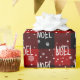 Weißer WEIHNACHTEN mit Schneeflocken auf rotem und schwarzem Büffel kariertem Hintergrund. Text und Farbe können bearbeitet werden.