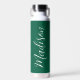 Eine wunderschöne Jägerflasche mit grünem Wasser mit weißem Monogramm für ein Mädchen oder einen Typ, das einfache, handgeschriebene Geschenke zu Weihnachten Lieben. Schönes kursives Skript an der Seite Ihrer Flasche, das Ihren Namen ausdrückt.