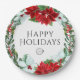 Holiday Party Modern Add Your Logo Weihnachts-Weihnachtsbuch Teller bietet ein schicke Urlaubsdesign von Aquarell Rot-Weiß Poinsettia Blume, heilig und mistletos in festlich rot, weiß und grün auf einem weißen Hintergrund. Der Text "Happy Holidays" ist in Kalligraphie-Schrift-Typografie geschrieben und mit dem Firmenlogo unten personalisiert. Ideal für Ihre Weihnachtsfeier. Bearbeiten Sie den Text einfach in den dafür vorgesehenen Textfeldern. Entworfen von ©Evco Holidays www.zazzle.com/store/evcoholidays