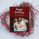 Rot karierte Weihnachtskarte mit dem Foto der Familie.