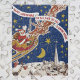 Vintage Illustration Frohe Weihnachtsgestaltung aus dem klassischen Kindergeschichte-Buch "Das war die Nacht vor Weihnachten". Dieses Bild ist die rückwärtige Kunst mit einem fröhlichen Weihnachtsmann, der mit seinem Schlitten, Rentier und einem Sack voller Spielzeuge am Heiligabend im Himmel fliegt, mit leuchtenden, bunten, gelben Sternen am Himmel. Frohe Weihnachten für alle und für alle eine gute Nacht! Dies war die Nacht vor Weihnachten, als alles durch das Haus Nicht ein Geschöpf rührte, nicht einmal eine Maus. Die Strümpfe wurden mit Sorgfalt am Kamin gehängt, in der Hoffnung, dass St. Nikolaus bald dort sein würde.