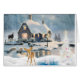 Winter Wonderland Weihnachten Hütte und Hirschszene Urlaubskarte. Art Creation © Tyra OBryant