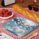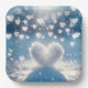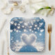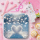 Ein großes, schneegedecktes Herz liegt mitten in einer Kaskade von kleineren, glitzernden Schneeflocken.