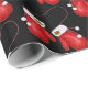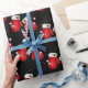 Weihnachtsgeschenkpapier mit einem niedlichen Weihnachtsmilbenprint auf schwarzem Hintergrund. Passen Sie dieses Papier an oder kaufen Sie, wie es ist.