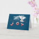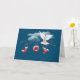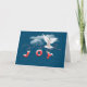 Weiße Taube mit Freudenzeichen auf einer rot-weiß gestreiften Kette in Schneeflocken. Inside text ist bearbeitbar.
