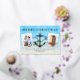 Diese Weihnachtskarte mit dem Thema Küste zeichnet sich durch ein nautisches Design mit einem Anker zwischen zwei Fotos, einen Strandfarbenhintergrund und eine Urlaubsbotschaft zum Thema Ozean am unteren Ende aus. Der Kopftext und der Anker werden mit einer echten Goldfolie gedruckt.