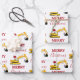 Eine niedliche Abbildung eines gelben Spielzeuggrabens mit einer Weihnachtsmannmütze und in Weihnachtsbeleuchtung dekoriert, der Weihnachtsgeschenke mit den Worten "Frohe Weihnachten" ausgräbt. Ideal für Baulaster jeden Alters. Ein ideales Weihnachtsverpackungspapier für Groß oder Klein, Mädchen oder Jungen.