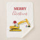 Eine niedliche Abbildung eines gelben Spielzeuggrabens mit einer Weihnachtsmannmütze und in Weihnachtsbeleuchtung dekoriert, der Weihnachtsgeschenke mit den Worten "Frohe Weihnachten" ausgräbt. Ideal für Baulaster jeden Alters. Eine ideale Weihnachtsdecke für Groß oder Klein, Mädchen oder Jungen.