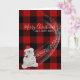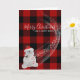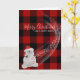 Eisbär mit Vogel und Bonbons auf rot und schwarz kariert für frohe Weihnachten und glückliches neues Jahr