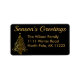 Schwarze und goldene Weihnachts- oder Feiertagsparty-Rücksendeadressen-Aufkleber. Eleganter goldener Weihnachtsbaum mit schwarzem Hintergrund mit Golddruck, und Label kann individuell angepasst werden. Kann mit Gold Christmas Tree 5 x 7 Einladung verwendet werden, die angepasst werden kann.