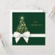 Luxuriöses und reichhaltiges Urlaubsprojekt mit einer herrlichen Weihnachtsbaum-Silhouette mit goldenen Schneeflocken. Die Einrichtung ist mit einem weißen goldenen Geschenkbogen auf einem grünen Hintergrund geschmückt. Dieses festliche Geschenkgutschein ist ideal für kleine Firmen oder für kleine Gruppen.