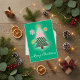 Freuen Sie sich auf eine skurrile Weihnachtskarte mit einem Weihnachtsbaum. Ein spielerischer und doch herzlicher Weg, sich mit Lieben zu verbinden und festlichen Beifall zu teilen, der sich persönlich und einzigartig anfühlt. Set auf grünem Hintergrund.
