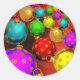 Weihnachts-Weihnachtsbaum-Ornamente Design für den Winterurlaub Weihnachten. Ein unterhaltsames und farbenfrohes digitales zeichn von runden Weihnachtsbaumschmuck mit Schneeflocken in leuchtenden Farben wie lila, gold, rot, gelb, aquamarin und grün. Ein fröhliches und farbenfrohes Weihnachtskonzept.