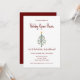 Festliche Feiertagseinladung mit Weihnachtsbaum und rotem Typografie-Design. Mit anpassbarer Schrift können Sie Ihren eigenen Text hinzufügen. Ein Spaß für die Planung einer Feier mit Freunden.