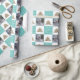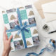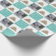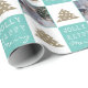 Weihnachtsbaum Familie Foto Wrapping Papier feierlich türkis und weiß Typografie. Türkis-weißer Hintergrund mit Schneeflocken und einem einfachen Weihnachtsbaum. Weiß, froh, Jolly Typografie. Personalisieren Sie das Design mit Ihrem Foto - fügen Sie es in die Vorlage ein und erstellen Sie Ihr persönliches Packpapier.