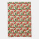 Ein Hahnenpfeifen mit Weihnachtselementen, wie dem Weihnachtsmann, Heiligen und Schneeflocken in Rot, Grün und Weiß macht ein niedliches Küchentuch, das sich perfekt für den Urlaub eignet.