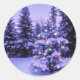 Lila mit Highlights aus Rose und Weiß. Beleuchtung Weihnachtsbaum in der Nacht im schneebedeckten Wald durch Mondlicht.