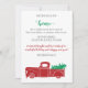 Niedlicher Weihnachtsbaum in einem roten LKW Wir haben die Ankündigung über die Bewegung von Feiertagen verschoben Postcard mit Red Vintage Car und dekorierten Weihnachtsbaum oben