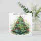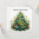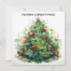 Weihnachtsbaumkarte im Aquarellstil und rote Ornamente