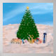 3D digitale Darstellung eines Weihnachtsbaumes und Geschenke auf einem Himmel und Schnee Hintergrund