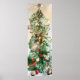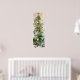 Wall-Kunst, die einen skurrilen Weihnachtsbaum mit einem schelhaften Kätzchen darstellt, und sogar der Weihnachtsmann, der bei der Dekoration des Baumes hilft