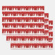 Moderne, schlichte Weihnachtsbilder mit weißen Silhouetten von Rentieren, Baum, Schneemann und Schneeflocken mit fröhlichen Weihnachtsgrüßen auf rotem Hintergrund.