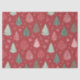 Dieses Papiertaschentuch zeichnet sich durch ein reizvolles, allgegenwärtige Muster undekorierter Weihnachtsbäume in verschiedenen stilisierten Formen aus, von hohen und schlanken Kiefern bis hin zu kurzen, abgerundeten Evergreens. Die Bäume sind in sanften grünen Farbtönen, Elfenbein und aquamarin gedämpft, verstreut über einen reichen roten Hintergrund und schaffen ein festliches und dennoch raffiniertes Design. Das Design ist auf leicht, halbdurchsichtig und bietet ein zartes, luftiges Aussehen, das perfekt dazu geeignet ist, der Geschenkverpackung eine subtile Touch zu verleihen. Die minimalistischen Bäume erinnern an eine natürliche, skandinavisch inspirierte Ästhetik, die frei von Ziergegenständen oder Verzierungen ist und das Muster modern und vielseitig anmutet. Ideal für die Verbindung mit Kraftpapier, Geschenktüten oder Vollfarben-Boxen bietet dieses Papiertaschentuch eine ruhige, waldinspirierte Eleganz für Ihre Urlaubspräsentationen.