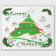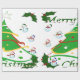 Dieses Design zeichnet sich durch einen grünen Weihnachtsbaum aus, der mit roten, goldenen und weißen Streifen und Weihnachtsbällen, die den Baum schmücken, geschmückt ist. Schneemänner und heilig dekorieren dieses Design. "Frohe Weihnachten" ist auf diesem Design in grün und weiß gedruckt. Dieses Verpackungspapier ist in verschiedenen Stilen, farbigen Hinterrunden und Rändern erhältlich.