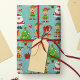 Lassen Sie Ihre Geschenke in festlichem Beifall mit diesem bezaubernden Urlaubspapier mit einem lustigen Muster des Weihnachtsmanns, seiner verspielten Elfen, verzierten Weihnachtsbäumen und Geschenken auf einem hellen, schneebedeckten Hintergrund wackeln. Dieses reizvolle Design ist ideal, um während der Ferienzeit Freude zu vermitteln und Ihrem Geschenk eine skurrile Touch hinzuzufügen.