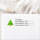 Dieses Design zeichnet sich durch eine schlichte Darstellung des Weihnachtsbaumes aus, die hauptsächlich aus Rechtecken und Quadraten besteht. Die Adresse daneben kann personalisiert sein.
