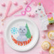 Foto eines Schneemanns, zeichnend von einem Weihnachtsbaum und zwei Schneeflocken, Rottext Weihnachten. Drucke, T - Shirt und Geschenke für Spaß und gute Laune. Weihnachten und Neujahr genießen