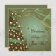 Eine elegante, elegante Weihnachtsweihnachtsbäume mit abstraktem, braunem Weihnachtsbaum, grünen Bändern, Sternen und einem Vorhang in Grün. Personalisieren Sie es mit Ihrem Text. Ideal für Ihr Party in Unternehmen, Unternehmen und Büros.