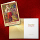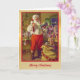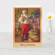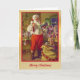 Der Weihnachtsmann untersucht eine Spielzeuglokomotive, während er seine Tasche auf der Vorderseite dieser Vintagen Art Weihnachtskarte füllt. Im Text unten steht "Frohe Weihnachten". Das Bild wird auf einem hellen goldenen Farbverlaufshintergrund platziert und in rot mit einer dünnen goldenen Linie umrahmt. Die Innenseite der Karte hat den goldenen Hintergrund auf dem links und die andere Seite ist weiß, mit benutzerdefinierten Textfeldern für Ihre Nachricht und Unterschrift. Feiern Sie Weihnachten auf die altmodische Art mit dieser schönen Karte, die ein Bild aus vergangenen Zeiten zeigt.