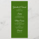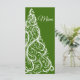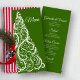 Das festliche "Green Christmas Tree Winter Wedding Menu" kann mit den Details des Essens, das Sie im Dezember Brautparty Mittag, Ehe Empfang Dinner oder Post Hochzeitsbrunch servieren, abgestimmt werden. Personalisieren Sie es mit den Namen der Braut und des Bräutigams, dem Ort und dem Veranstaltungsdatum. Dieses elegante, wintery Hochzeitsmenü besticht durch ein aufwändiges weißes Weihnachtsbaumdesign mit grünem Hintergrund.