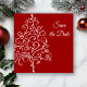 Erzählen Sie Ihre kommenden Dezember-Nuptials mit dem festlichen Red Christmas Tree Winter Wedding Ankündigung Datum freihalten. Diese elegante, eigenhändige Winterheirat behalte die Dattelkarte mit einem aufwändigen, weißen Weihnachtsbaumdesign auf rotem Hintergrund. Erhältlich als gedruckte Einladung zum Verschicken oder als digitaler Download für den einfachen digitalen Austausch online.